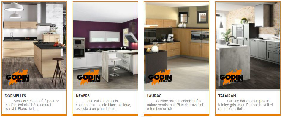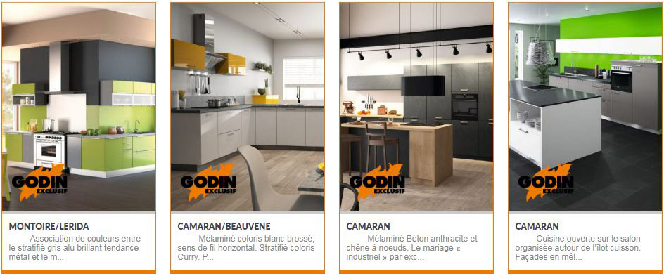 solide, facile d’entretien), en inox (raffiné, facile d’entretien, résistant) ou encore en bois (naturel, chaleureux, solide, très esthétique) : avec notre large choix, vous trouverez votre cuisine idéale, qu’elle soit claire, colorée, design, chaleureuse, rustique… GODIN s’adapte à vos désirs. Les cuisines en métal représentent également une large gamme au sein des cuisines
